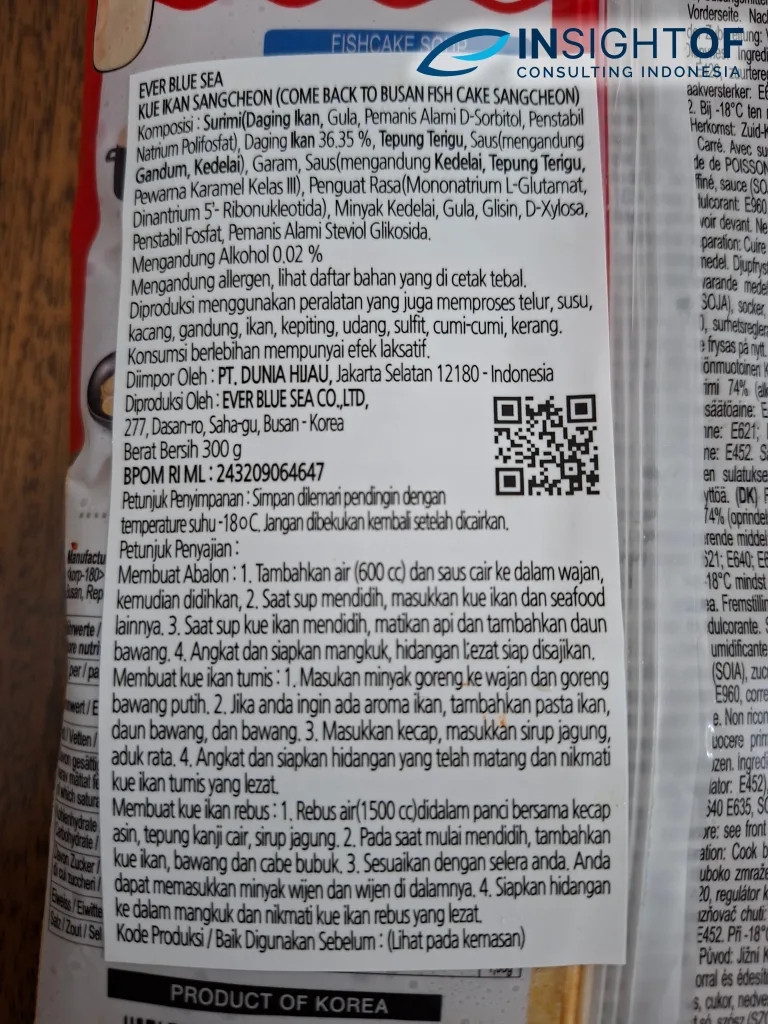 기타 정보수입사 명, 유통기한, 인도네시아어 라벨 등 의무 정보 포함