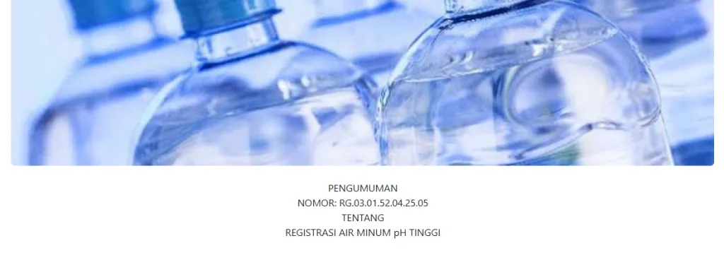 PENGUMUMAN NOMOR: RG.03.01.52.04.25.05 TENTANG REGISTRASI AIR MINUM pH TINGGI